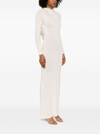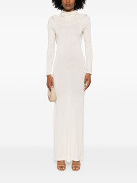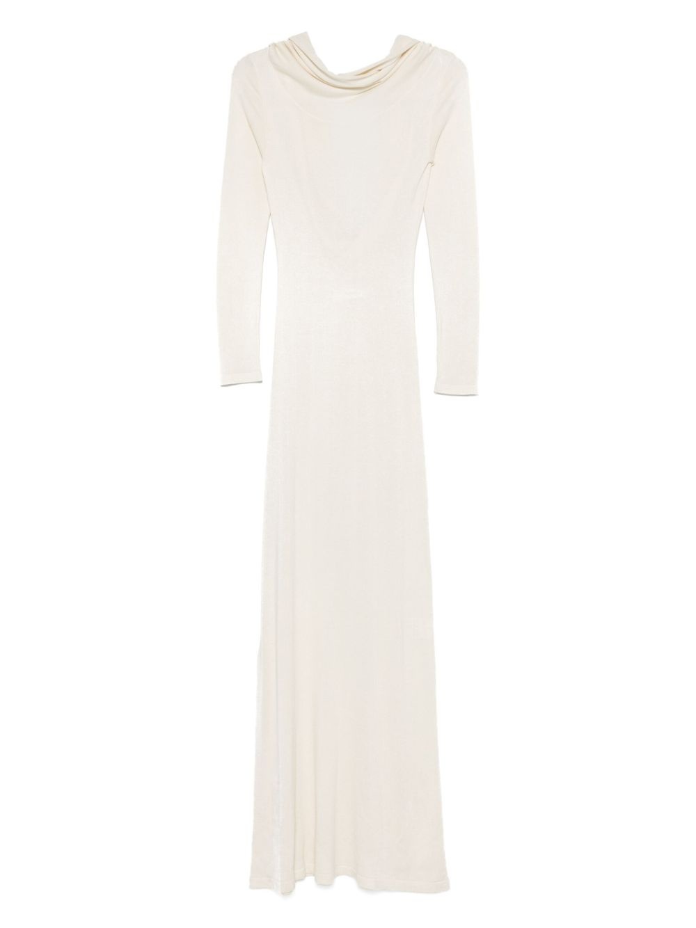 fine-knitted maxi dress Highlights - Ecru - Cowl neck - Long sleeves - Ribbed cuffs and hem Imported Composition Silk 85%, Cashmere 15% SIZE & FIT Model measurements Height 5 ft 11 in(1.8 m) Bust/Chest 32.67 in(83 cm) Hips 35.82 in(91 cm) Waist 25.98 in(66 cm) FittingInformation Designed for a close fit throughout Made with a lightweight knit, this piece offers some stretch