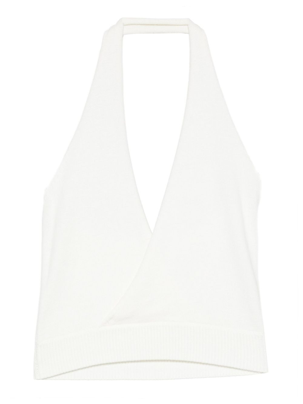 halterneck knitted tank top Highlights - White - Halterneck - Sleeveless - Knitted fabric - V-neckline - Cropped Imported Composition Cotton 67%, Nylon 33% SIZE & FIT Model measurements Height 5 ft 11 in(1.8 m) Bust/Chest 31.49 in(80 cm) Hips 36.61 in(93 cm) Waist 24.4 in(62 cm) Washing instructions Dry Clean Only