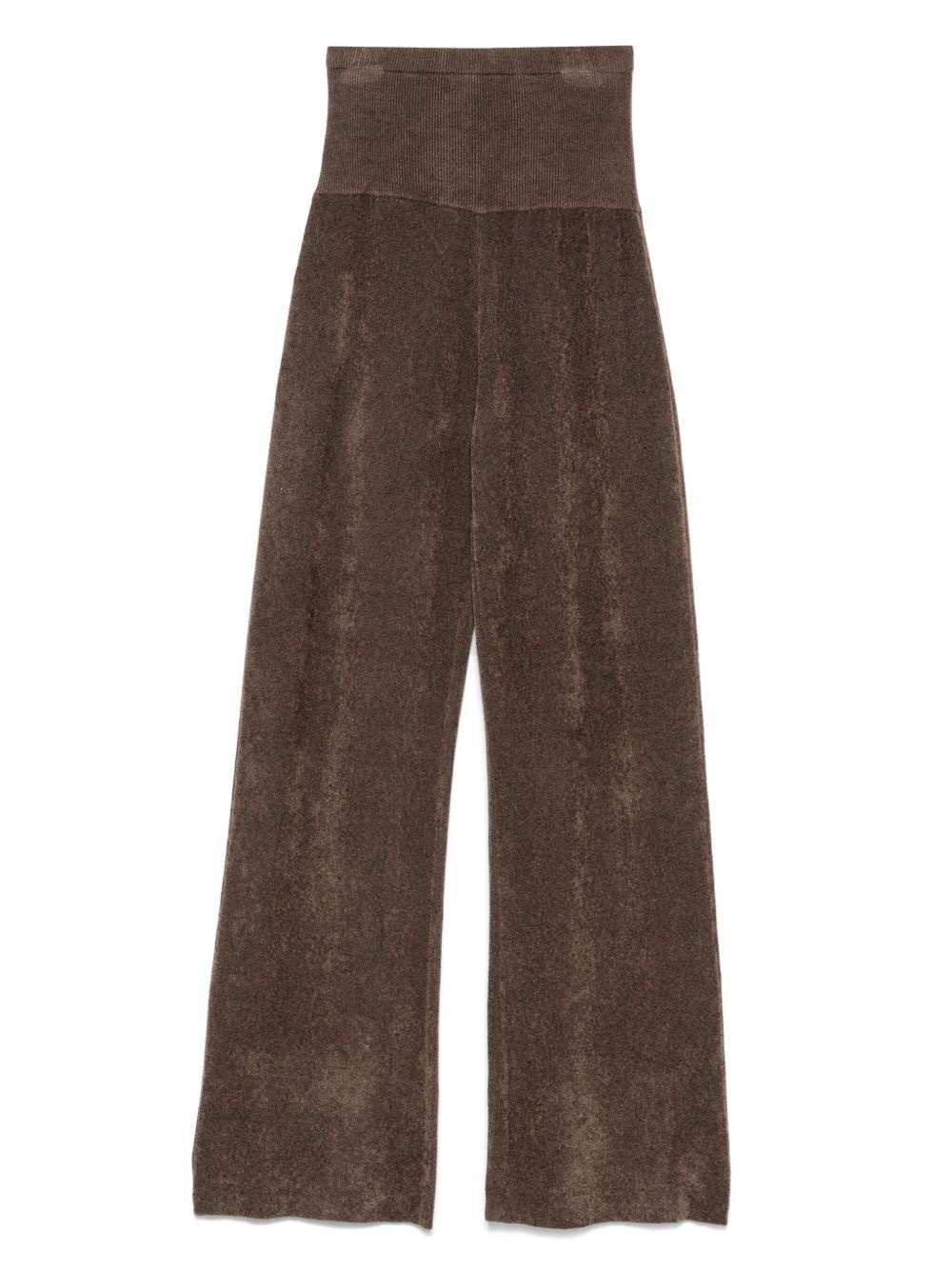 knitted trousers Highlights - Chocolate brown - Ribbed waistband - High waist - Cropped leg Imported Composition Viscose 60%, Nylon 40%