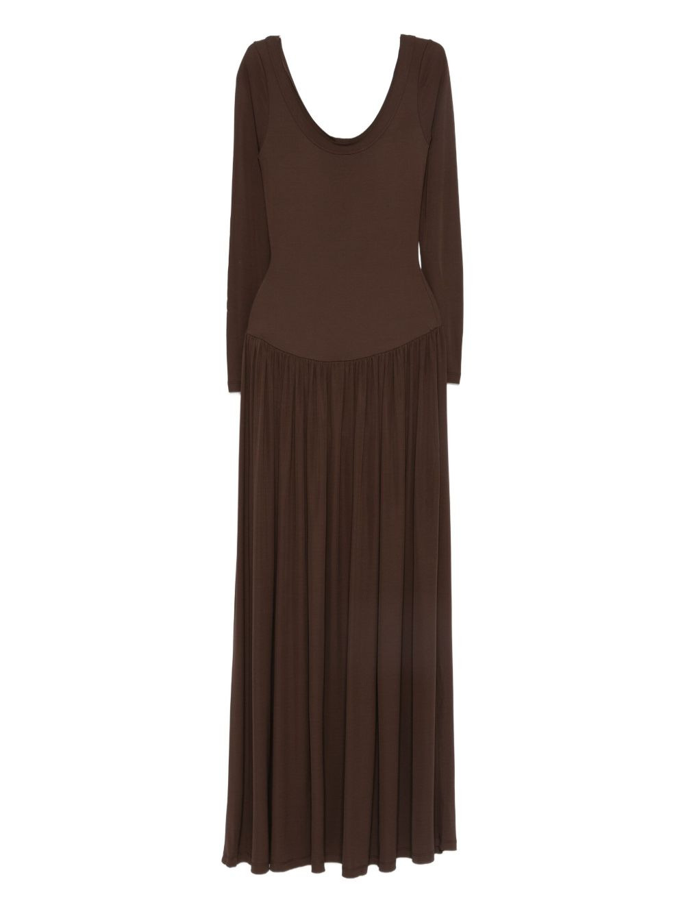 long-sleeved dress Highlights - Brown - Scoop neck - Long sleeves - Gathered detail Imported Composition Viscose 97%, Elastane 3% SIZE & FIT Model measurements Height 5 ft 10 in(1.77 m) Bust/Chest 32.28 in(82 cm) Hips 35.03 in(89 cm) Waist 25.19 in(64 cm) Washing instructions Read Manufacturer Guidelines