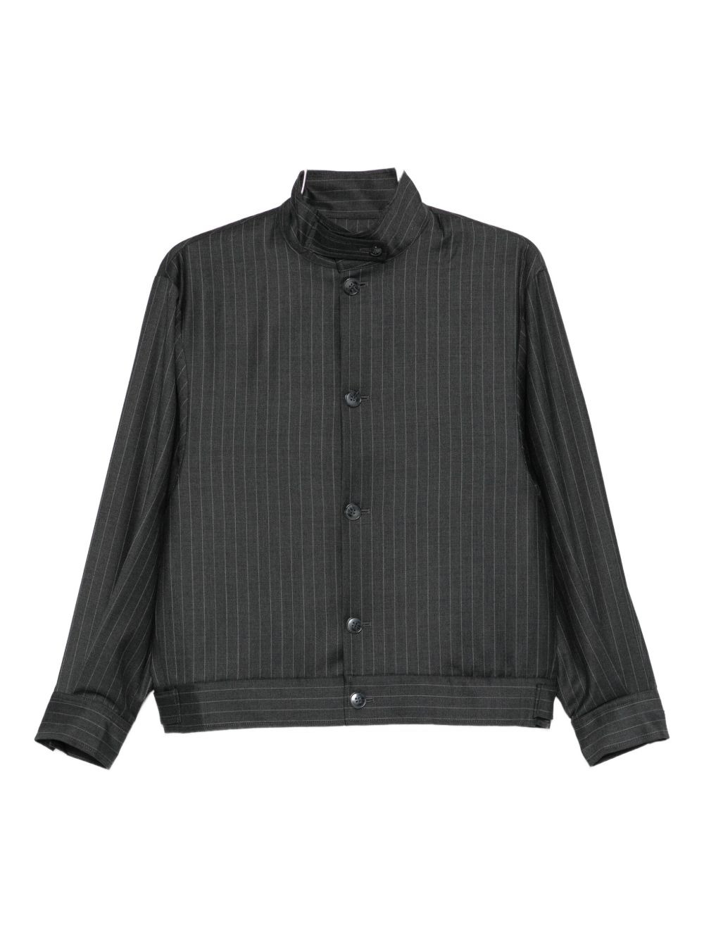 pinstriped bomber jacket Highlights Imported Composition Fabric 100% SIZE & FIT Model measurements Height 5 ft 9 in(1.76 m) Bust/Chest 31.49 in(80 cm) Hips 35.43 in(90 cm) Waist 23.62 in(60 cm)