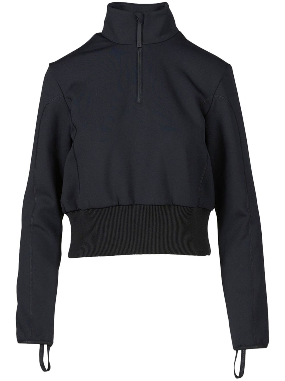 half-zip sweatshirt Highlights - Black - Half front zip fastening - High neck - Long sleeves - Ribbed hem - Straight hem Imported Composition Polyimide 87%, Elastane 13%