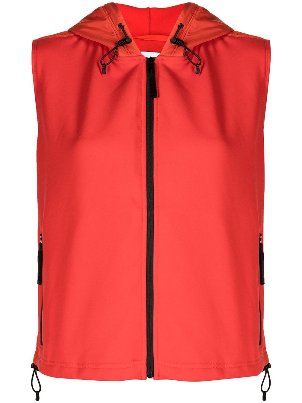 Uphill walking vest Highlights - Red - Two side zip-fastening pockets - Front zip fastening - Classic hood - Sleeveless - Straight hem - Stretch-design Imported Composition Outer: Polyester 92%, Elastane 8% SIZE & FIT Model measurements Height 5 ft 10 in(1.77 m) Bust/Chest 33.85 in(86 cm) Hips 35.03 in(89 cm) Waist 24.01 in(61 cm) FittingInformation Designed to be unstructured, offering a loose fit throughout Made from a midweight stretch fabric, this piece offers elasticity and flexibility when worn Washing instructions Hand Wash