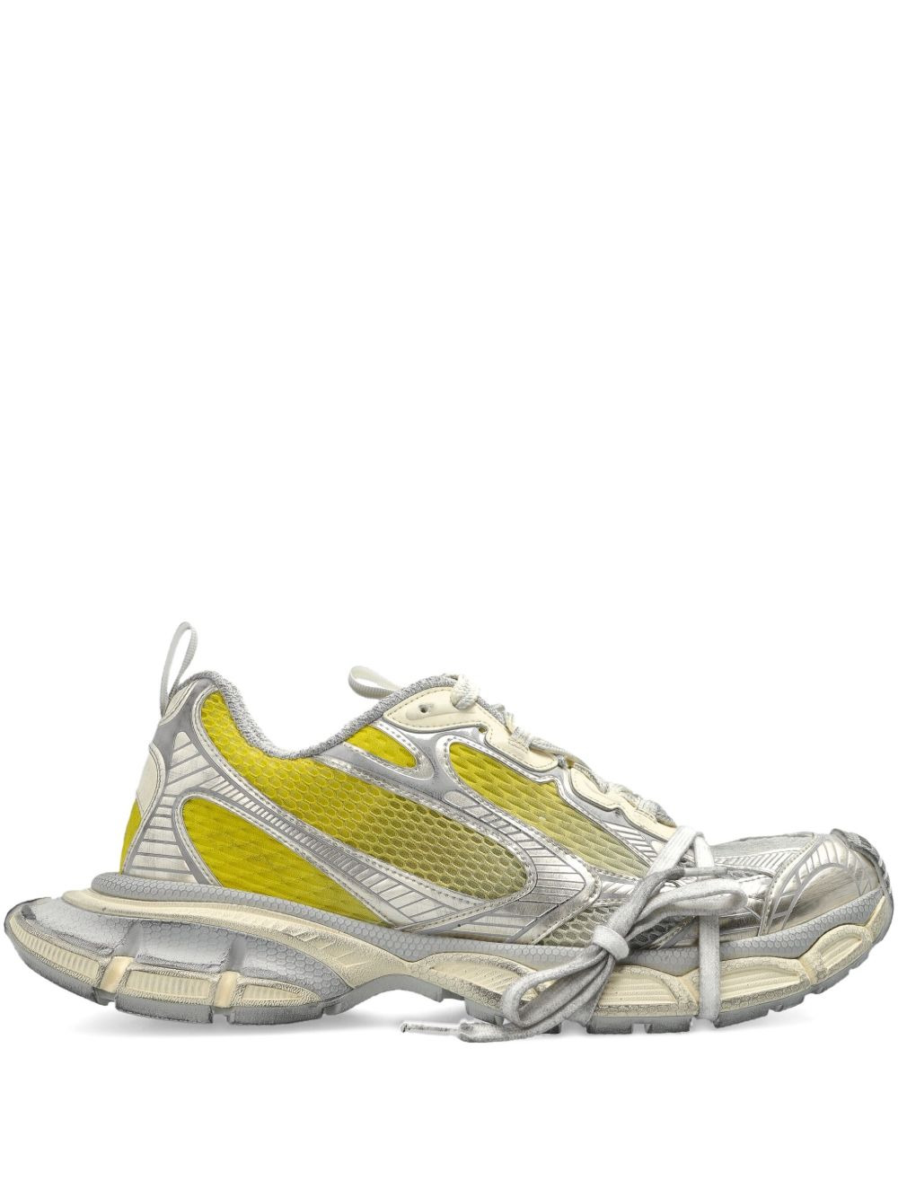 3XL panelled lace-up sneakers Highlights - Silver-tone - Front lace-up fastening - Double pull-tab at the opening - Chunky rubber lug sole - Metallic effect Imported Composition Outer: Polyurethane 100%, Mesh 100% Lining: Fabric 100% Sole: Rubber 100%