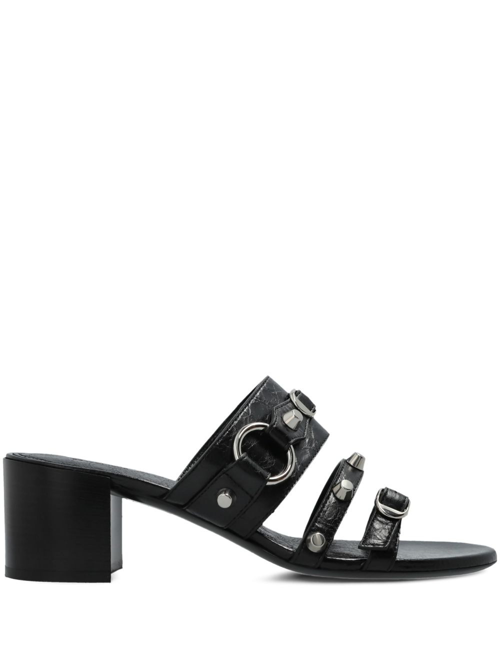 65mm leather heeled sandals Highlights - Black - Three straps - Buckle embellishment - Stud embellishment - Mid block heel Made in Italy Composition Outer: Lamb Skin 100% Lining: Calf Leather 100% Sole: Calf Leather 100% SIZE & FIT Measurement HEEL 2.55 in(6.5 cm)