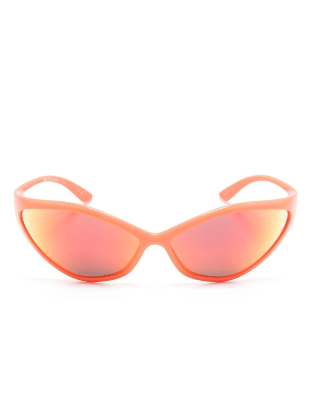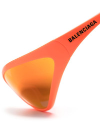 90s oval sunglasses A signature style, Balenciaga's 90s oval sunglasses are back for the new season in a vibrant orange colour. They're constructed with bio-based injected nylon frames and temples and enhanced by a logo engraved on the left temple. Highlights - Orange - Acetate - Debossed logo to the side - Gradient lenses - Straight arms - 100% uva/uvb protection - These glasses come with a protective case. Made in Italy Composition Acrylic 100%, Acetate 100% SIZE & FIT Measurement Arm Length 4.72 in(12 cm) Bridge Width 0.59 in(1.5 cm) Lens Diameter 3.26 in(8.3 cm) Total Width 6.69 in(17 cm)