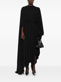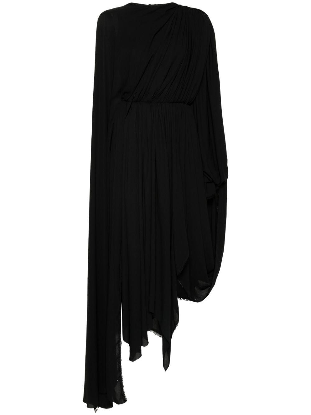 All In midi dress Highlights - Black - Crepe texture - Asymmetric design - Draped design - Gathered detailing - Frayed detailing at the cuffs - Sash detail - Round neck - Long puff sleeves with elasticated flared cuffs - Rear tie fastening - Concealed side zip fastening - Below-knee length - Asymmetric hem - Partial lining Made in Italy Composition Polyester 100%, Polyamide 68%, Elastane 32% SIZE & FIT Model measurements Height 5 ft 10 in(1.77 m) Bust/Chest 32.28 in(82 cm) Hips 35.03 in(89 cm) Waist 25.19 in(64 cm) FittingInformation Designed for a close fit at the chest and waist with a loose fit at the hip Particularly long in length; consider your own measurements Made from a midweight fabric This piece fits true to size – take your usual size Washing instructions Dry Clean Only