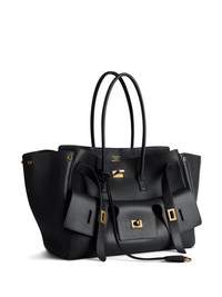 Bel Air tote bag Highlights - Black - Calf leather - Smoothing finish - Gold-tone logo lettering - Buckle-strap fastening - Press-stud fastening - Front flap pockets - Two rolled top handles - Gold-tone hardware Made in Italy Composition Outer: CALFSKIN 100% Lining: Lambskin 100% SIZE & FIT Measurement DEPTH 3.6 in(9.1 cm) HEIGHT 10.2 in(25.9 cm) WIDTH 11.4 in(28.9 cm)