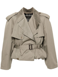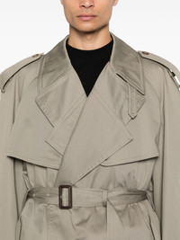 cotton trench coat Highlights - Sand beige - Cotton - Twill weave - Notched lapels - Epaulettes - Extra-long sleeves - Storm flap - Belted waist - Two side pockets - Straight hem - Double-breasted button fastening - When buying this unisex item, keep in mind that it is graded in standard men's sizing. Made in Italy Composition Outer: Cotton 100% Lining: Cotton 100%, Cupro 100%, Wool 100% SIZE & FIT Model measurements Height 5 ft 10 in(1.77 m) Bust/Chest 33.85 in(86 cm) Hips 37 in(94 cm) Waist 26.37 in(67 cm) Measurement LENGTH 24.01 in(61 cm) FittingInformation This unisex piece is designed for an oversized fit whether you usually select women's or men's sizes The belt offers adjustability for fitted preferences Made from a midweight non-stretch fabric Washing instructions Dry Clean Only