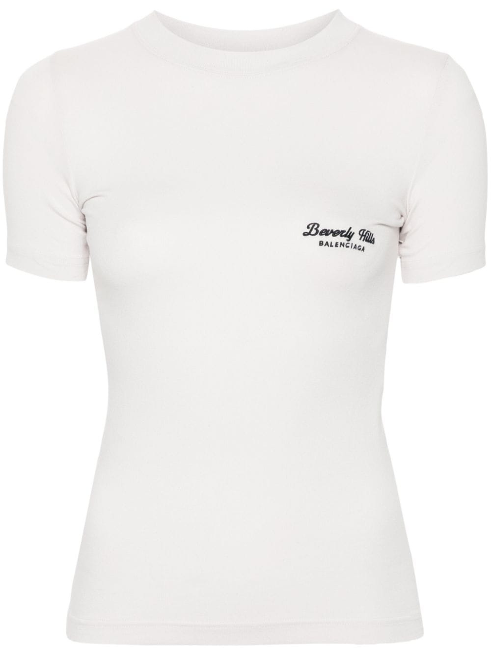 Beverly Hills embroidered T-shirt Highlights - Off-white - Cotton blend - Stretch-jersey - Ribbed crew neck - Short sleeves - Embroidered logo at the chest - Straight hem Imported Composition Polyester 100%, Cotton 94%, Spandex/Elastane 6% SIZE & FIT Model measurements Height 5 ft 11 in(1.8 m) Bust/Chest 32.67 in(83 cm) Hips 36.22 in(92 cm) Waist 24.4 in(62 cm) Measurement SLEEVE LENGTH 9.25 in(23.5 cm) LENGTH 21.25 in(54 cm) WAIST 25.98 in(66 cm) BUST 27.55 in(70 cm) Shoulder Width 11.81 in(30 cm) FittingInformation Designed for a slim fit that sits just away from the body offering a close yet comfortable fit Made from a midweight stretch fabric, this piece offers elasticity and flexibility when worn This piece fits true to size – take your usual size