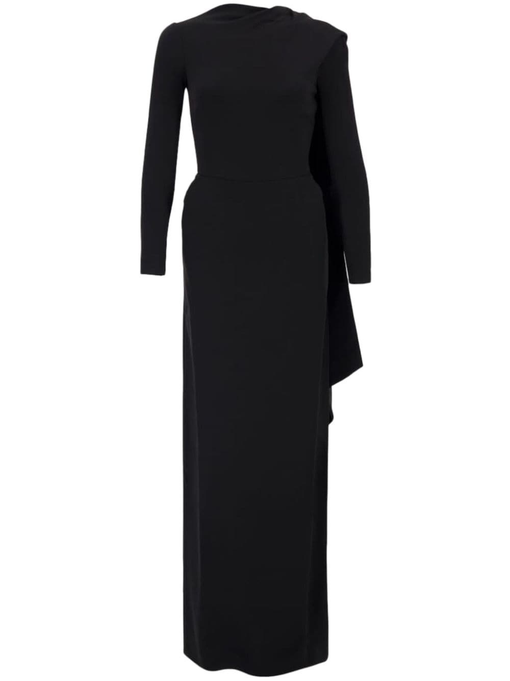 cape-design gown Highlights - Black - Crepe texture - Open back - Cape design - Rear zip fastening - Long sleeves - Maxi Made in Italy Composition Lining: Polyamide 80%, Elastane 20% Outer: Triacetate 97%, Elastane 3%