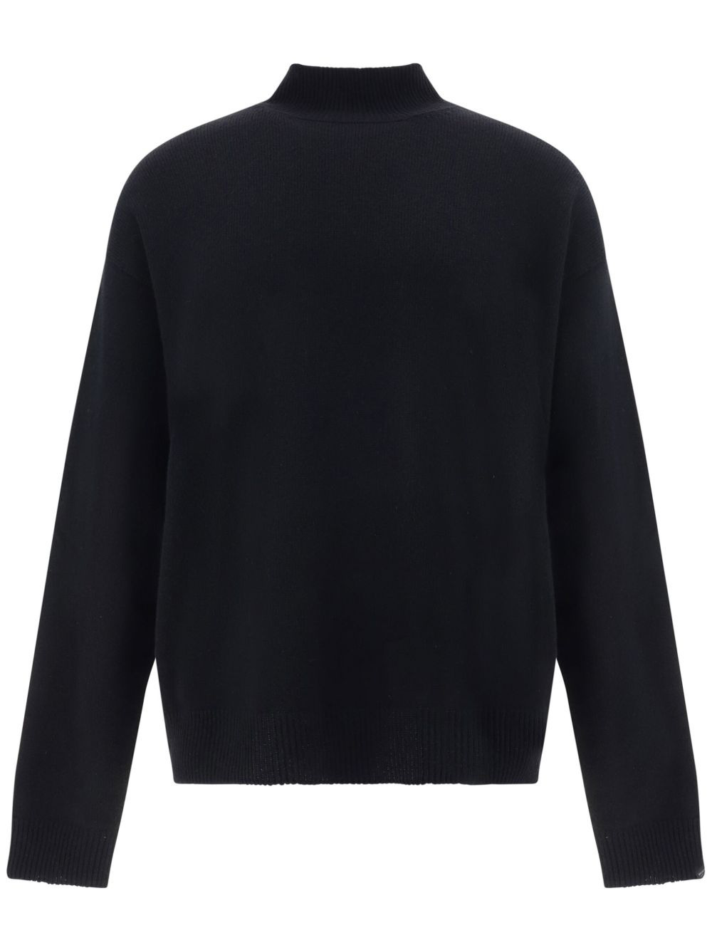 cashmere jumper Highlights - Black - Cashmere - Fine knit - Ribbed-knit edge - Roll neck - Drop shoulder - Long sleeves - Straight hem Made in Italy Composition Cashmere 100% SIZE & FIT FittingInformation Designed to be unstructured, offering a loose fit throughout Made with a midweight knit, this piece offers some stretch Washing instructions Read Manufacturer Guidelines