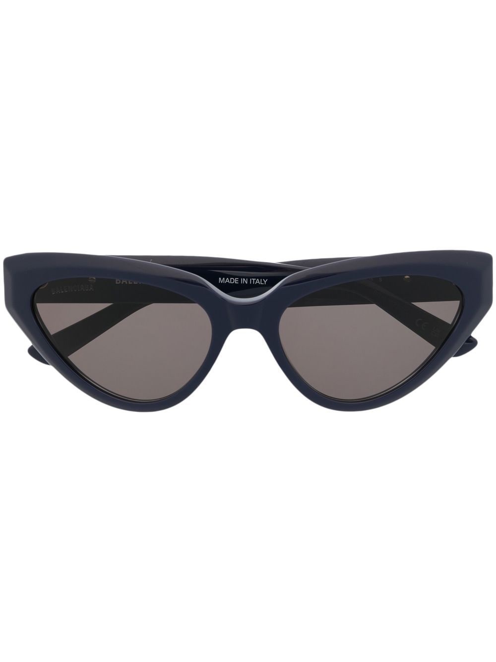 cat-eye sunglasses navy blue acetate cat-eye frame tinted lenses logo plaque at the arm straight arms These glasses come with a protective case. Made in Italy Composition Acetate 100% SIZE & FIT Measurement Arm Length 5.51 in(14 cm) Bridge Width 0.7 in(1.8 cm) Lens Diameter 2.2 in(5.6 cm) Total Width 5.7 in(14.5 cm)