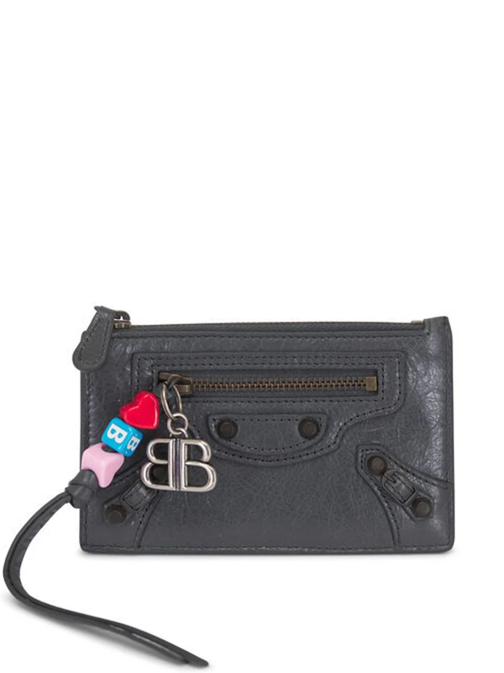charm leather wallet Highlights - Grey - Zip fastening - Logo charm - Card slots - Top zip fastening Made in United States Composition Lambskin 80%, Zamak 10%, Brass 6%, Resin 4%