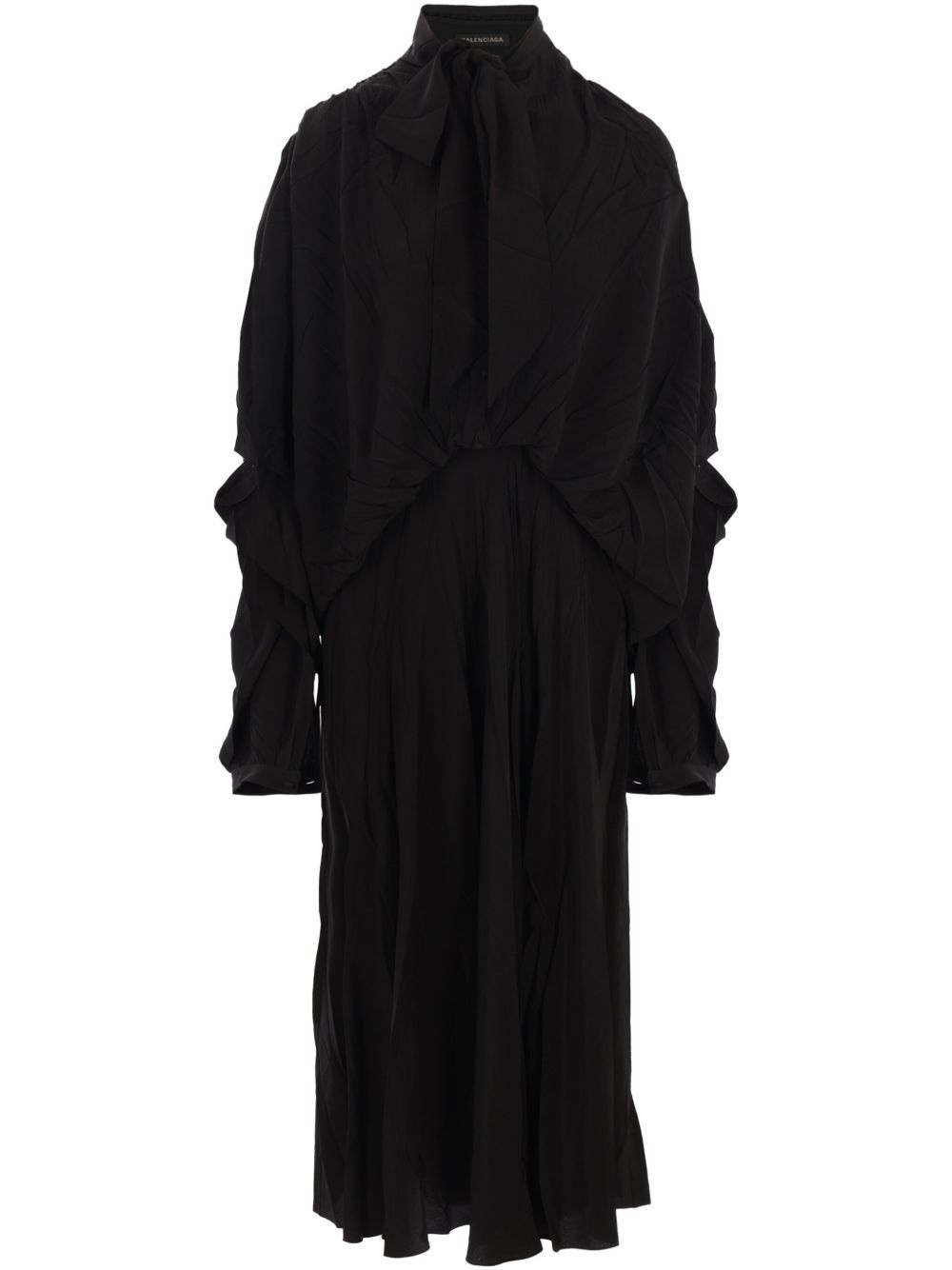 creased-effect silk dress Highlights - Black - Gathered tie neck - Crease effect Made in Italy Composition Silk 100%