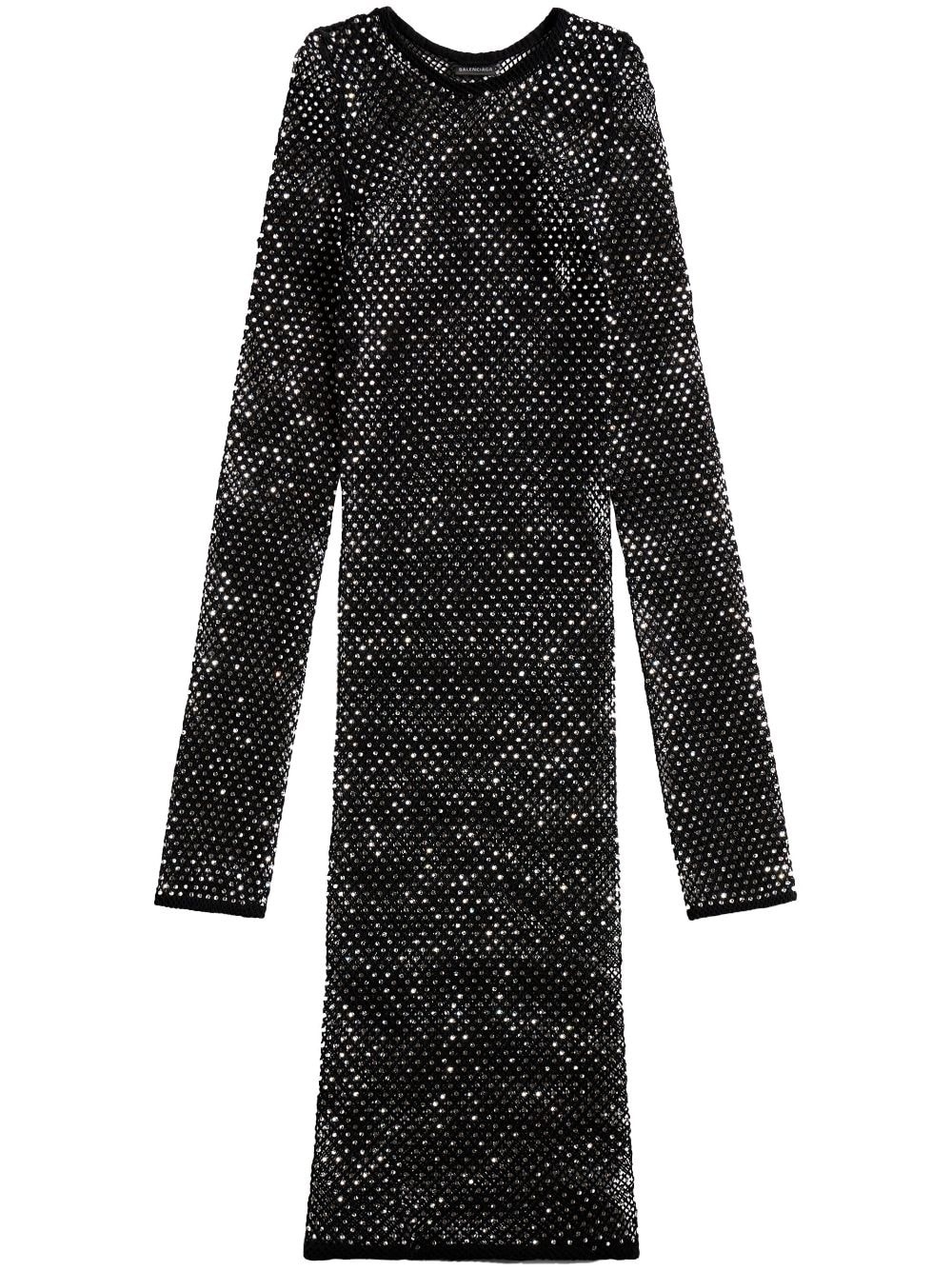 crystal-mesh long-sleeve minidress The crochet-knit construction of this long-sleeve minidress is adorned with glistening rhinestones for an opulent look — a nod to Balenciaga's experimental approach to proportions and texture. Highlights - Black - Crochet knit - Rhinestone embellishment - Round neck - Long sleeves - Thigh-length - Stretch-design Made in Italy Composition Polyamide 80%, Spandex/Elastane 20%