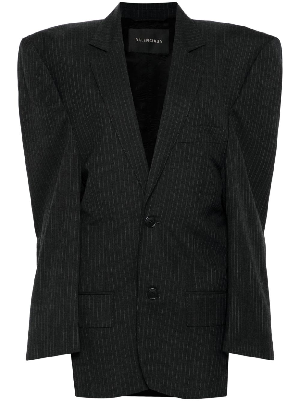 cut-way blazer Highlights - Dark grey - Wool - Pinstripe print - Boxy fit - Notched lapels - Shoulder pads - Chest welt pocket - Long sleeves - Buttoned cuffs - Two side flap pockets - Central rear vent - Logo-jacquard lining - Straight hem - Front button fastening - Straight hem Made in Italy Composition Lining: Cotton 100%, Cupro 100% Outer: Wool 100% SIZE & FIT Model measurements Height 5 ft 10 in(1.77 m) Bust/Chest 32.28 in(82 cm) Hips 35.03 in(89 cm) Waist 25.19 in(64 cm) FittingInformation Designed for an oversized fit, offering additional room throughout The vented hem offers movement at the rear Made from a midweight non-stretch fabric This piece fits true to size – if you would prefer a closer fit, take one size down Washing instructions Dry Clean Only