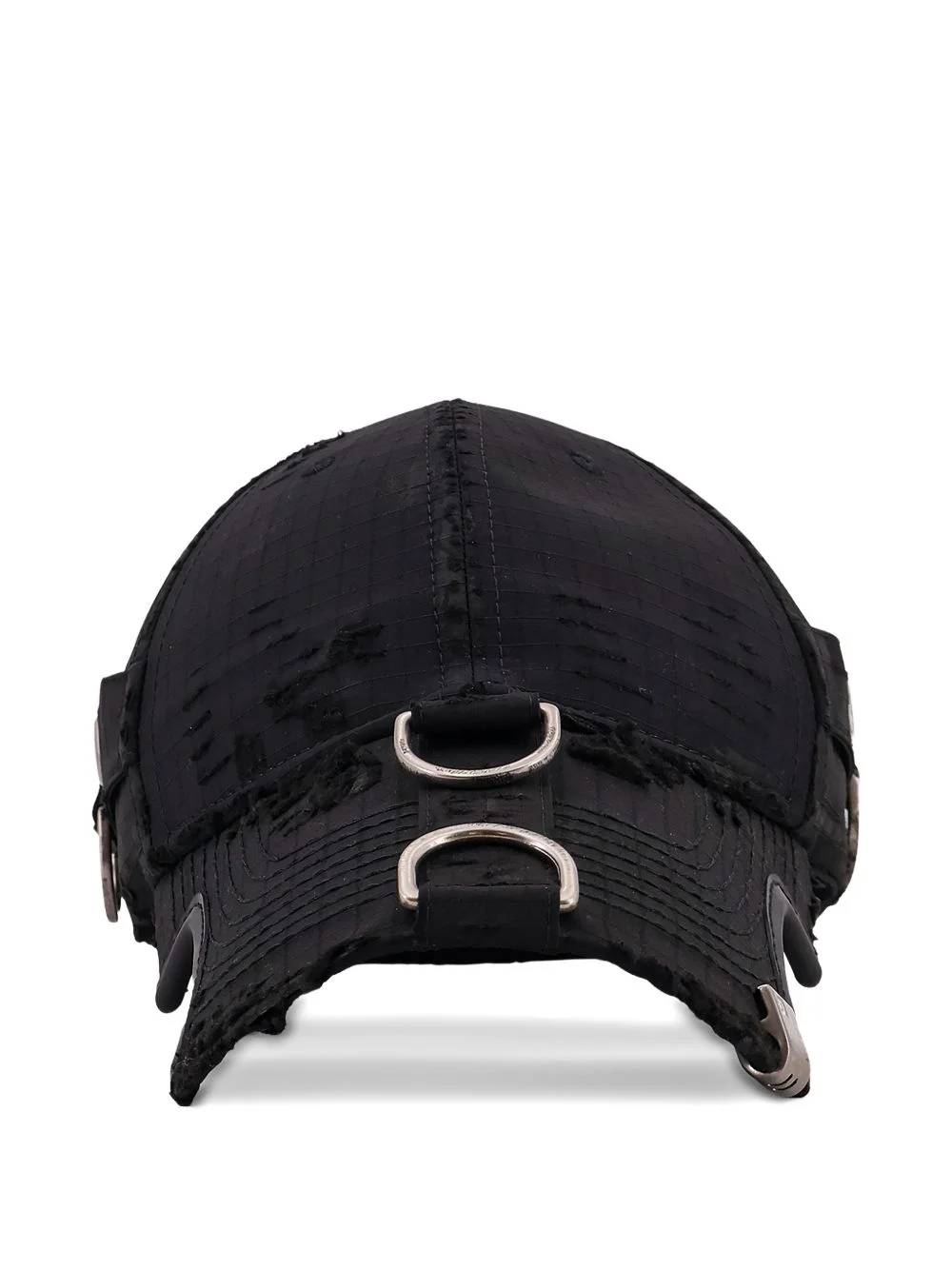 D-Ring cargo cap Highlights - Black - D-ring detailing - Distressed finish - Adjustable strap - Rear logo detail - Panelled design - Curved peak Made in Italy Composition Polyester 100%