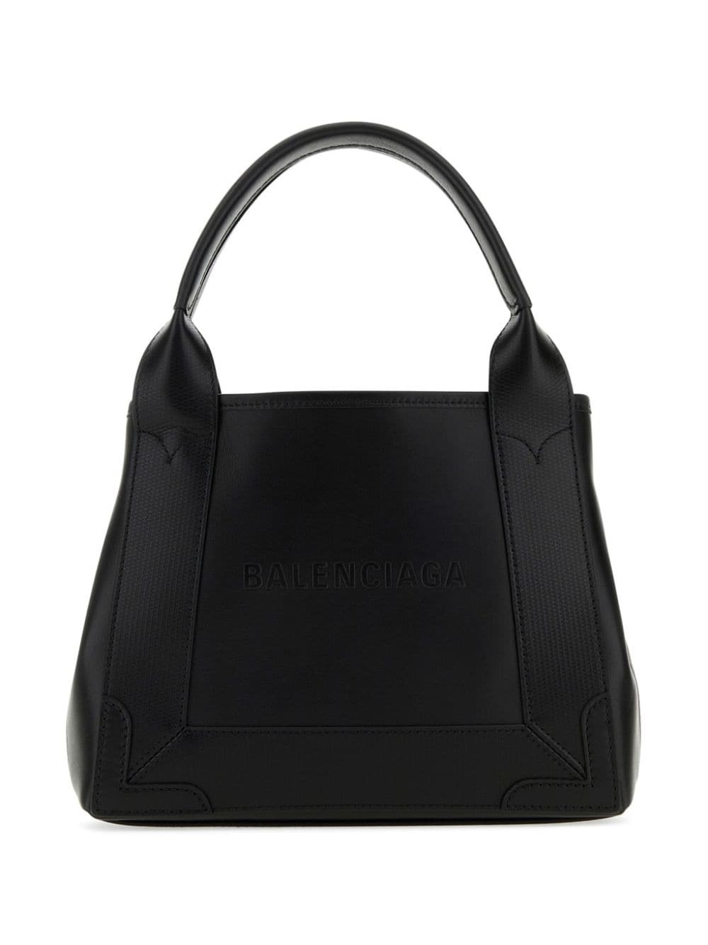debossed-logo leather tote bag This Balenciaga tote bag reflects the brand's sophisticated aesthetic, as it comes in a monochromatic pattern. Its front is simply decorated with the brand's debossed logo, following a minimalist design strategy. Highlights - Black - Leather - Debossed logo to the front - Two top handles - Detachable shoulder strap - Main compartment Made in Italy Composition Outer: CALFSKIN 100% SIZE & FIT Measurement DEPTH 2.75 in(7 cm) HANDLE 4.33 in(11 cm) HEIGHT 7.87 in(20 cm) STRAP 20.86 in(53 cm) WIDTH 9.84 in(25 cm)