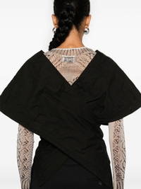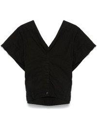 deconstructed top Highlights - Black - Cotton blend - Ripstop texture - Deconstructed design - Pull-on style - V-neck - Cap sleeves - Concealed fly and button-fastening detail - Decorative belt loops - Rear criss-cross design - Asymmetric hem Made In Italy Composition Outer: Cotton 53%, Polyamide 47% Lining: Cotton 100% SIZE & FIT Model measurements Height 5 ft 10 in(1.78 m) Bust/Chest 33.07 in(84 cm) Hips 36.61 in(93 cm) Waist 24.8 in(63 cm) FittingInformation Designed for a relaxed fit, this piece allows for comfort and movement when worn Made from a midweight non-stretch fabric