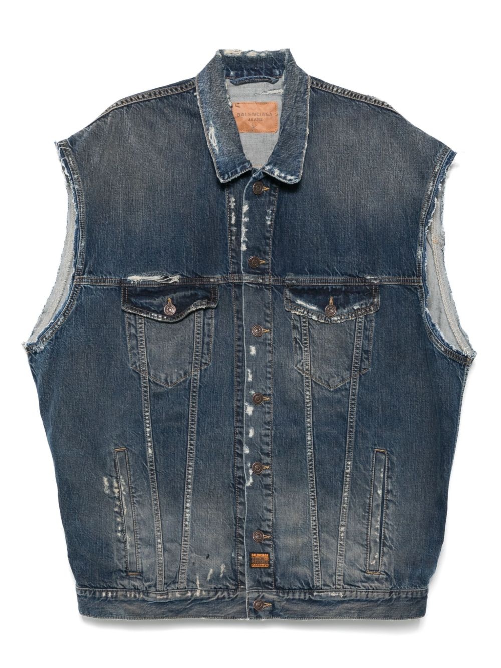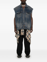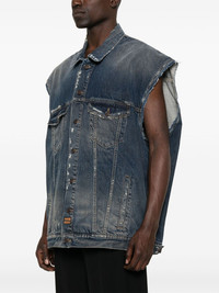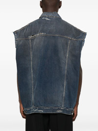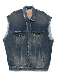 denim gilet Highlights - Indigo blue - Front button fastening - Two chest flap pockets - Two side welt pockets - Waist tabs Made in Italy Composition Outer: Cotton 100% Lining: Polyester 65%, Cotton 35% SIZE & FIT Model measurements Height 6 ft 0 in(1.84 m) Bust/Chest 37.79 in(96 cm) Hips 37 in(94 cm) Waist 31.49 in(80 cm) FittingInformation Designed to be unstructured, offering a loose fit throughout Sturdy and hard-wearing, this denim piece offers no stretch