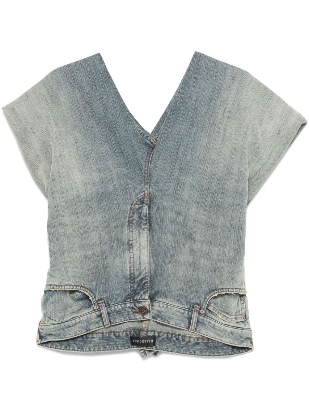 Denim Pants top Highlights - Indigo blue - Cotton - Washed denim - Trompe l'œil construction - V-neck - Cap sleeves - V-back - Two side inset pockets - Asymmetric hem Made In Italy Composition Outer: Cotton 100% Lining: Polyester 65%, Cotton 35% SIZE & FIT Model measurements Height 5 ft 10 in(1.77 m) Bust/Chest 33.07 in(84 cm) Hips 37 in(94 cm) Waist 24.8 in(63 cm) FittingInformation Designed for a relaxed fit, this piece allows for comfort and movement when worn Sturdy and hard-wearing, this denim piece offers no stretch Measurement SLEEVE LENGTH 7.51 in(19.1 cm) LENGTH 24.01 in(61 cm) WAIST 29.01 in(73.7 cm) BUST 42 in(106.7 cm)