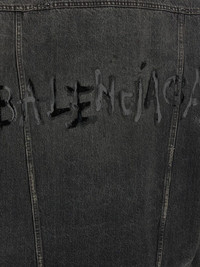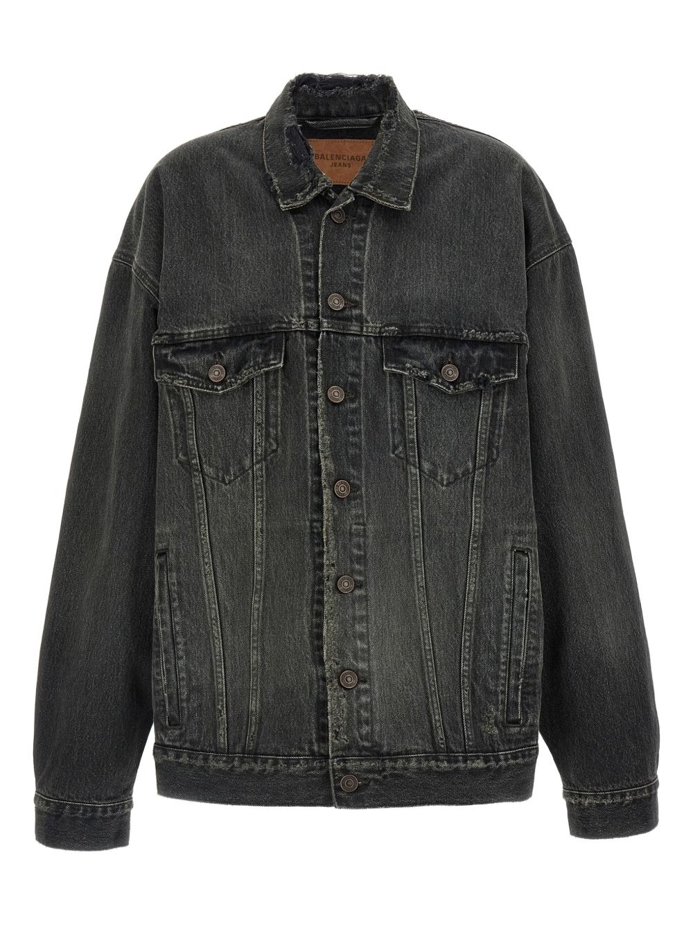 distressed denim jacket Highlights - Dark gray - Front button fastening - Two chest pockets - Back logo detail - Slightly frayed seams Imported Composition Cotton 100% Washing instructions Read Manufacturer Guidelines
