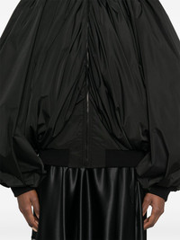 draped bomber jacket Highlights - Black - Front zip fastening - Long raglan sleeves - Two side flap pockets - Rear elasticated hem Made in Italy Composition Outer: Polyester 100%, Cotton 89%, Polyamide 9%, Spandex/Elastane 2% Lining: Cupro 100%, Polyester 100% SIZE & FIT Model measurements Height 5 ft 11 in(1.8 m) Bust/Chest 31.49 in(80 cm) Hips 36.61 in(93 cm) Waist 24.4 in(62 cm) FittingInformation Designed to be unstructured, offering a loose fit throughout The ribbed hem offers a close, comfortable fit Made from a midweight fabric