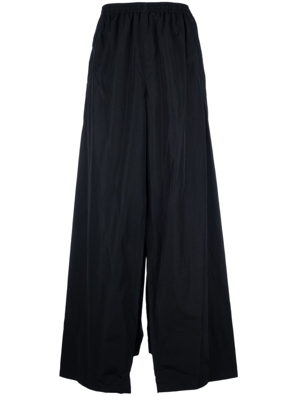 drawstring-waist wide-leg trousers Balenciaga injects its penchant for exaggerated designs into these minimalistic track pants. Cut to a mid-rise silhouette, they fall into an elongating wide leg. Highlights - Black - Cotton blend - High-shine finish - Mid-rise - Elasticated waistband with internal drawstring - Two side zip-fastening pockets - Wide leg - Floor-length - When buying this unisex item, keep in mind that it is graded in standard men's sizing. Made in Italy Composition Outer: Cotton 52%, Polyamide 48% Lining: Polyester 100% SIZE & FIT FittingInformation This piece is unisex and is designed with a wide-leg, whether you usually select women's or men's sizes The elasticated waist allows for a comfortable fit Made from a midweight non-stretch fabric