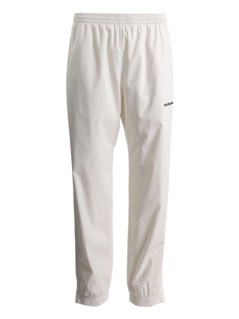 elastic-cuff trousers Highlights - Off-white - Elasticated cuffs - Logo-lettering - Side pockets - Elasticated waistband Made in Italy Composition Fabric 100% Washing instructions Read Manufacturer Guidelines