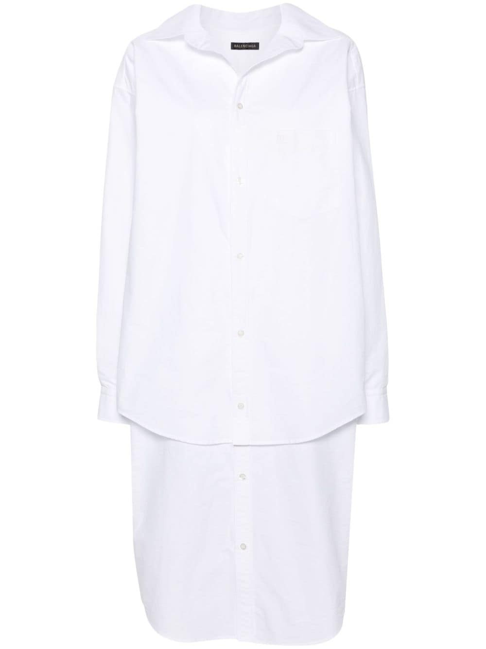 embroidered-logo layered shirt dress Highlights - White - Cotton - Poplin texture - Layered design - Classic collar - Drop shoulder - Long sleeves with buttoned cuffs - Chest patch pocket - Embroidered logo - Curved hem - Front button fastening Made in Italy Composition Cotton 100%, Polyester 100% SIZE & FIT Model measurements Height 5 ft 11 in(1.8 m) Bust/Chest 31.49 in(80 cm) Hips 36.61 in(93 cm) Waist 24.4 in(62 cm) FittingInformation Designed to be unstructured, offering a loose fit throughout Made from a midweight non-stretch fabric This piece fits true to size – take your usual size