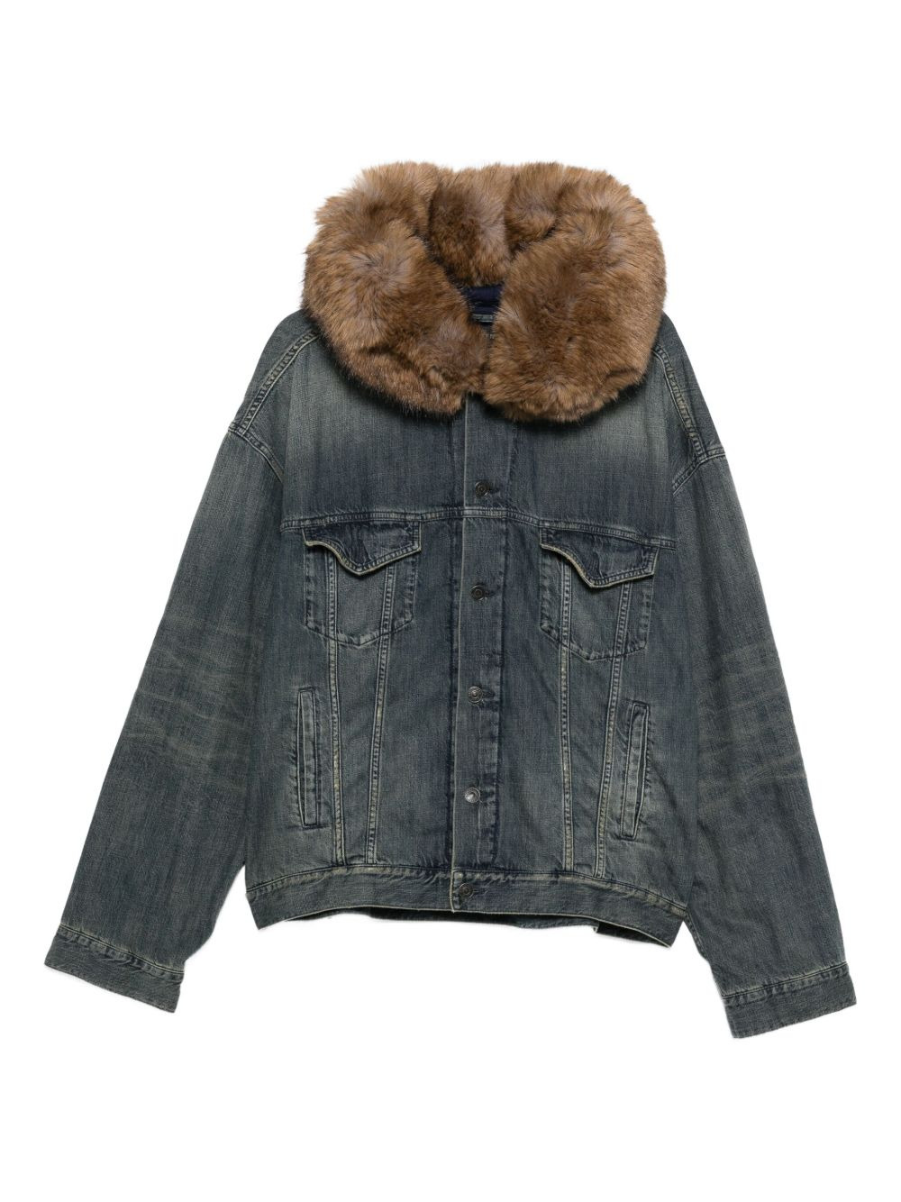 faux fur-collar denim jacket Highlights - Dark-blue - Faux-fur collar - Button fastening - Chest pockets - Welt pockets - Long sleeves Made in Italy Composition Polyester 100%, Cotton 100% SIZE & FIT Model measurements Height 6 ft 1 in(1.85 m) Bust/Chest 38.58 in(98 cm) Hips 37 in(94 cm) Waist 30.31 in(77 cm) Washing instructions Read Manufacturer Guidelines