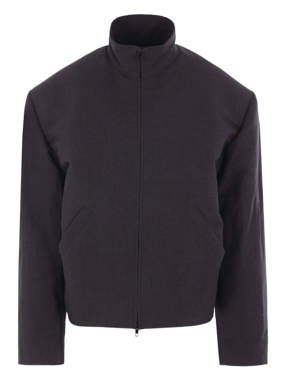 high-collar padded-shoulder jacket Highlights - Black - High collar - Two-way zip closure - Two side pockets - Padded shoulders - Long sleeves Made in Italy Composition Outer: Linen/Flax 56%, Cotton 42% Lining: Cupro 100% Washing instructions Read Manufacturer Guidelines