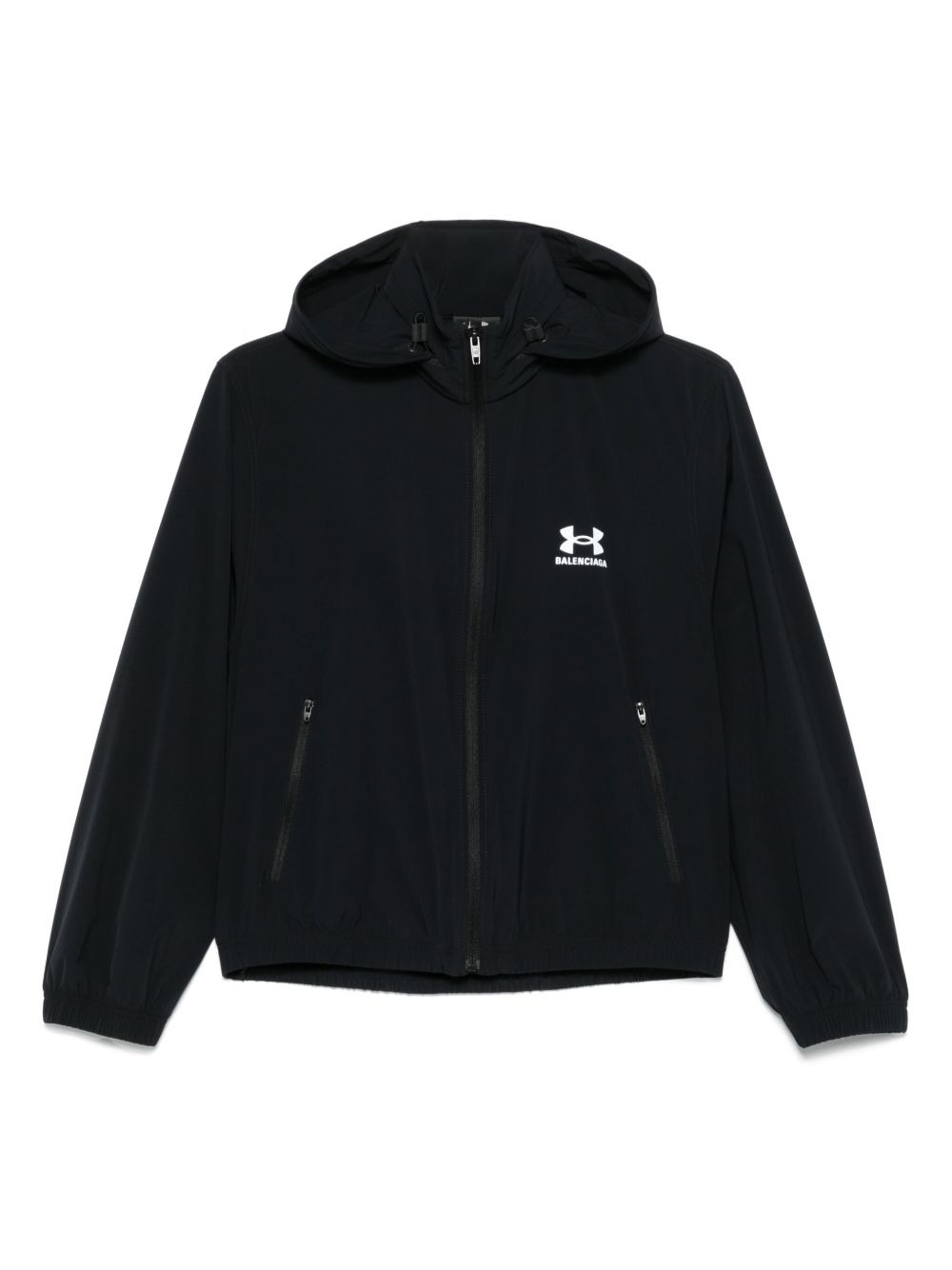 hooded jacket Highlights - Black - Front zip fastening - Two side zip-fastening pockets - Drawstring hood - Logo print at the chest Made in Italy Composition Base: Polyamide 85%, Elastane 15% SIZE & FIT Model measurements Height 5 ft 11 in(1.8 m) Bust/Chest 31.49 in(80 cm) Hips 35.82 in(91 cm) Waist 24.8 in(63 cm) FittingInformation Designed for a relaxed fit, this piece allows for comfort and movement when worn The internal drawstring at the hem allows for fitted preferences Made from a midweight stretch fabric, this piece offers elasticity and flexibility when worn Washing instructions Hand Wash