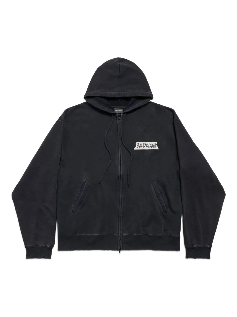 Men's Masking Tape Oversized Zip-up Hoodie in Faded Black