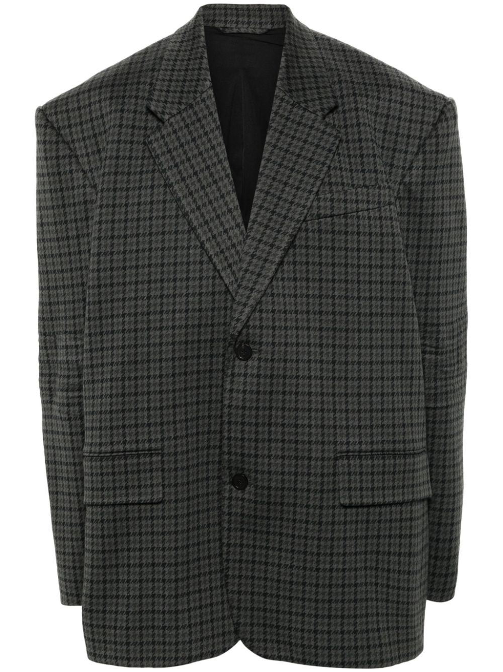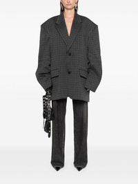houndstooth blazer Balenciaga takes a classic approach to outerwear with this single-breasted blazer, imagined in a houndstooth pattern. The charcoal grey colourway offers a sleek look to the garment. Highlights - Charcoal grey - Houndstooth pattern - Wide notch lapels - Front button fastening - Chest welt pocket - Two front flap pockets - Long sleeves - Full lining - Multiple internal slip pockets - Straight hem - When buying this unisex item, keep in mind that it is graded in standard men's sizing. Made in Italy Composition Outer: Polyester 49%, Cotton 45%, Polyamide 6% Lining: Cotton 100%, Polyamide 89%, Spandex/Elastane 11% SIZE & FIT Model measurements Height 5 ft 9 in(1.75 m) Bust/Chest 32.67 in(83 cm) Hips 36.22 in(92 cm) Waist 24.8 in(63 cm) FittingInformation This piece is unisex – if you usually select men's sizing expect a loose fit throughout; if you usually select women's sizes, expect an oversized fit Made from a midweight fabric Washing instructions Dry Clean Only