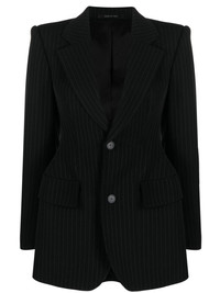 Hourglass pinstripe single-breasted blazer This blazer from Balenciaga is modelled after the label’s signature silhouettes from the ‘50s. Maintaining the structured Hourglass shape, this single-breasted iteration is lined with classic pinstripes. Highlights - Black/white - Wool blend - Pinstripe print - Classic lapels - Front button fastening - Shoulder pads - Long sleeves - Buttoned cuffs - Two side flap pockets Made in Italy Composition Lining: Cotton 100% Outer: Spandex/Elastane 1% SIZE & FIT Model measurements Height 5 ft 10 in(1.79 m) Bust/Chest 31.1 in(79 cm) Hips 35.03 in(89 cm) Waist 24.01 in(61 cm) FittingInformation Designed for a slim fit that sits just away from the body offering a close yet comfortable fit The internal shoulder pads offer a structured shape This piece fits true to size – take your usual size