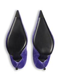 Knife 110mm ankle boots Balenciaga combines Parisian refinement with a streetwear edge to create directional silhouettes that are coveted by the sartorial crowd the world over. These sleek Knife boots feature a signature exaggerated pointed toe for a striking statement. Highlights - Lilac - Stretch-design - Pointed toe - Sock-style ankle - 110mm high stiletto heel - Pull-on style Made in Italy Composition Outer: Viscose 79%, Polyamide 19%, Elastane 2% Lining: Fabric 100% Sole: Leather 100% SIZE & FIT Measurement HEEL 4.33 in(11 cm) CIRCUMFERENCE 8.26 in(21 cm) HEIGHT 7.48 in(19 cm)