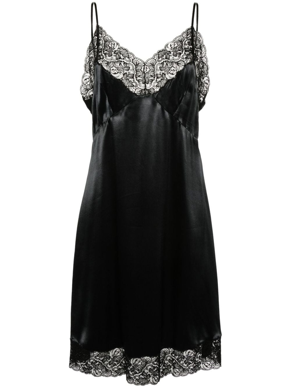 lace-embellished midi dress Highlights - Black - Shift style - Spaghetti straps - V-neck - Lace panels - Scallop hem - Mid-length - Unlined Made in Italy Composition Cotton 100% SIZE & FIT Model measurements Height 5 ft 11 in(1.8 m) Bust/Chest 31.49 in(80 cm) Hips 36.61 in(93 cm) Waist 24.4 in(62 cm) Measurement HIPS 45 in(114.3 cm) LENGTH 38.5 in(97.8 cm) WAIST 35.98 in(91.4 cm) BUST 35.98 in(91.4 cm) FittingInformation Designed to be unstructured, offering a loose fit throughout Made from a lightweight non-stretch fabric This piece fits true to size – those with a petite frame may wish to take one size down