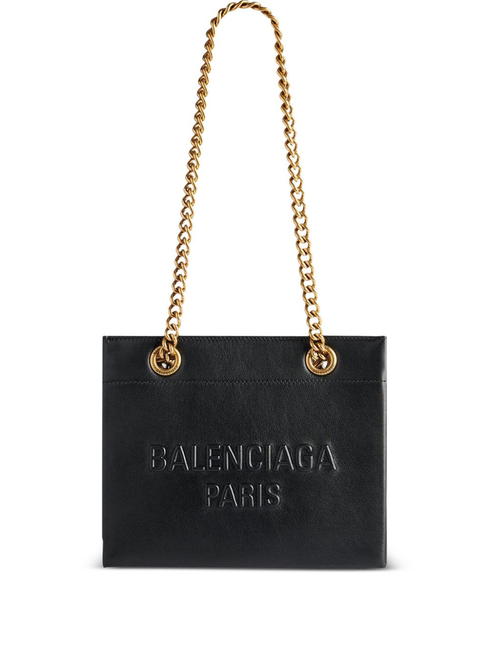 large Duty Free tote bag Highlights - Black - Calf leather - Smooth grain - Embossed logo to the front - Gold-tone hardware - Open top - Two chain-link top handles - Main compartment - Internal zip-fastening pocket - Cotton canvas lining Made in Italy Composition Outer: CALFSKIN 100%