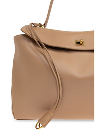 leather tote bag Highlights - The rodeo large handbag in latte smooth calfskin offers a timeless blend of elegance and functionality. designed with a structured silhouette, it features aged-gold hardware that complements its sophisticated latte hue. this italian-crafted bag includes a comfortable top handle with a 9-inch drop, as well as a removable shoulder strap for versatile styling. the spacious interior boasts a main compartment, a secure zipped pocket, and two flat back pockets, perfect for organizing essentials. with a turn-lock closure, wide front pocket, side snaps, and protective brass feet, this handbag combines refined aesthetics with practical design.made in italycolor: latte browncomposition: calfskin leathercare instructions: specialist leather cleaningdimensions: l15,7 x h11,8 x w5,1 inch Made in Italy Composition Leather 100% SIZE & FIT Measurement HEIGHT 11.02 in(28 cm) WIDTH 15.35 in(39 cm)