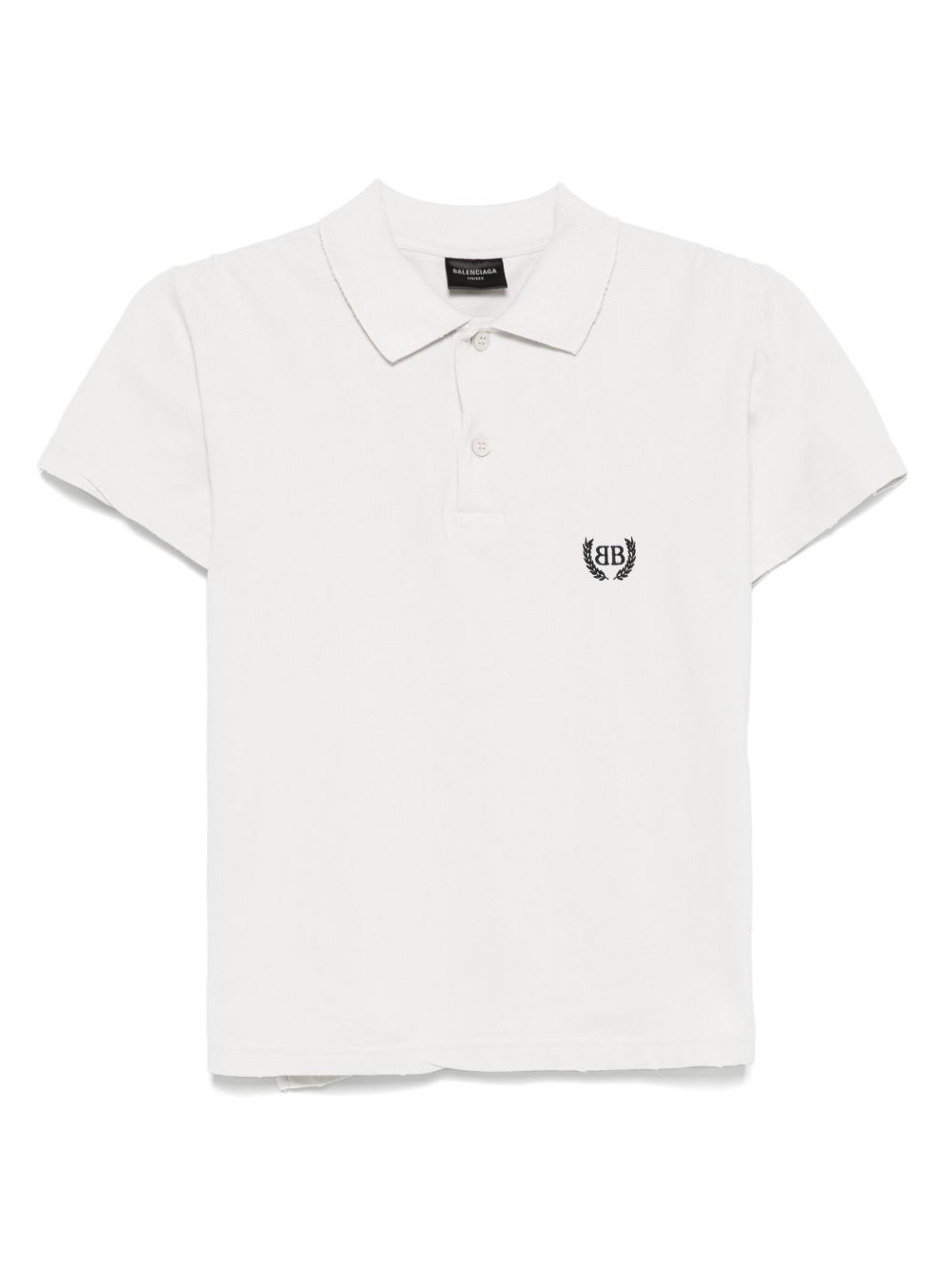 logo-embroidered polo shirt Highlights - Light grey - Short front button fastening - Short side slits - Ripped detailing - Short sleeves Imported Composition Cotton 100%, Polyester 100% SIZE & FIT Model measurements Height 5 ft 9 in(1.75 m) Bust/Chest 31.88 in(81 cm) Hips 34.64 in(88 cm) Waist 24.01 in(61 cm) FittingInformation This piece is unisex – expect a close fit throughout if you usually select men's sizing; expect a slim fit if you usually select women's sizes Made from a midweight non-stretch fabric, this piece offers minimal elasticity when worn