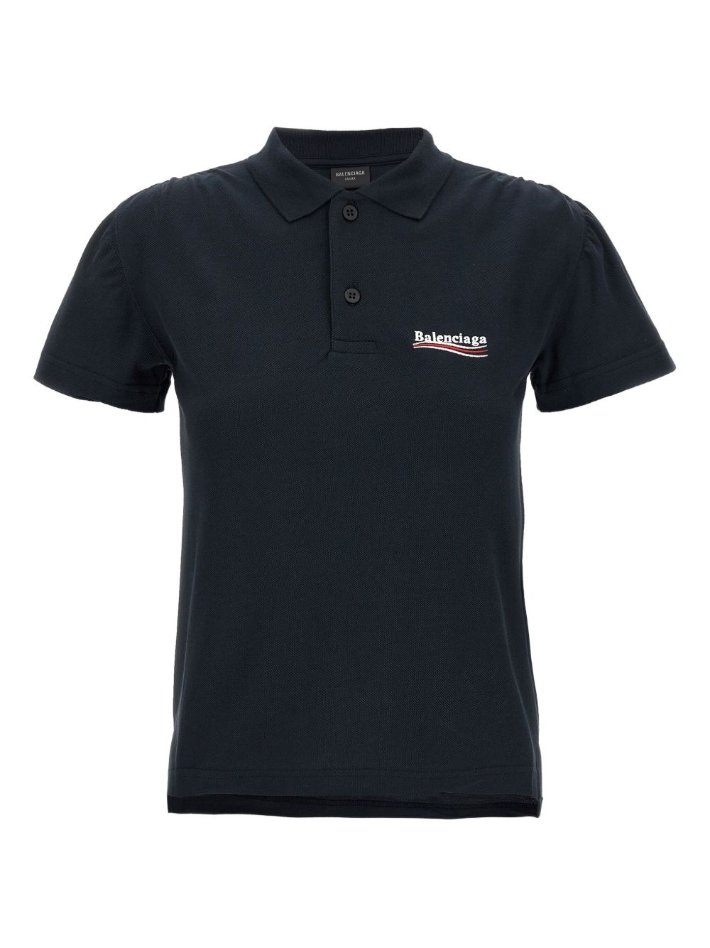 logo-embroidered polo top Highlights - Navy blue - Embroidered logo at chest - Contrasting logo at back - Button placket - Gathered short sleeves Imported Composition Cotton 100%