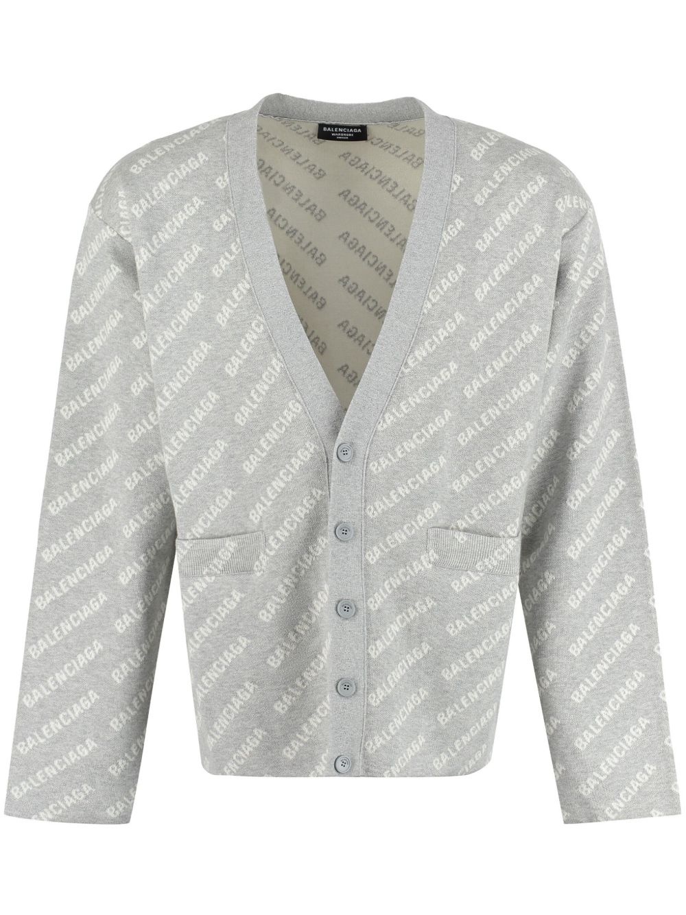 logo-intarsia cardigan Highlights - Light grey/white - Knitted construction - Intarsia-knit logo - V-neck - Front button fastening - Drop shoulder - Long sleeves - Two side welt pockets - Straight hem - When buying this unisex item, keep in mind that it is graded in standard men's sizing. Made in Italy Composition Wool 30%, Cotton 30%, Polyester 27%, Polyamide 12%, Elastane 1% SIZE & FIT Measurement CHEST 49.6 in(126 cm) SLEEVE LENGTH 24.01 in(61 cm) LENGTH 26.37 in(67 cm) Shoulder Width 21.65 in(55 cm)