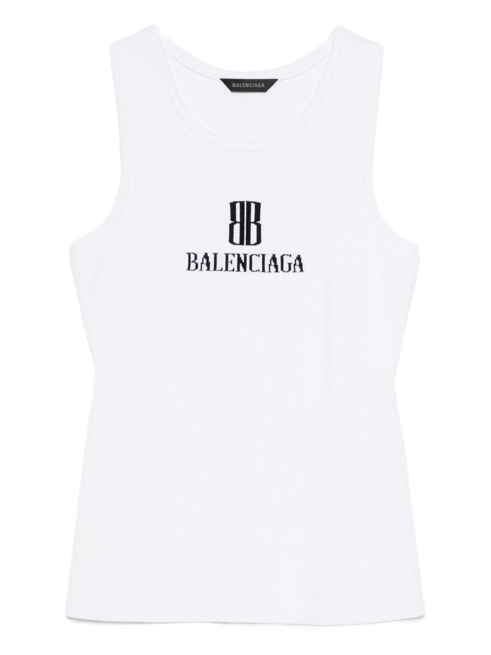 logo-intarsia sleeveless tank top Highlights - White - Sleeveless design - Ribbed fabric - Logo intarsia Made in Italy Composition Viscose 84%, Polyester 16% SIZE & FIT Model measurements Height 5 ft 11 in(1.8 m) Bust/Chest 31.49 in(80 cm) Hips 36.61 in(93 cm) Waist 24.4 in(62 cm) Washing instructions Dry Clean Only