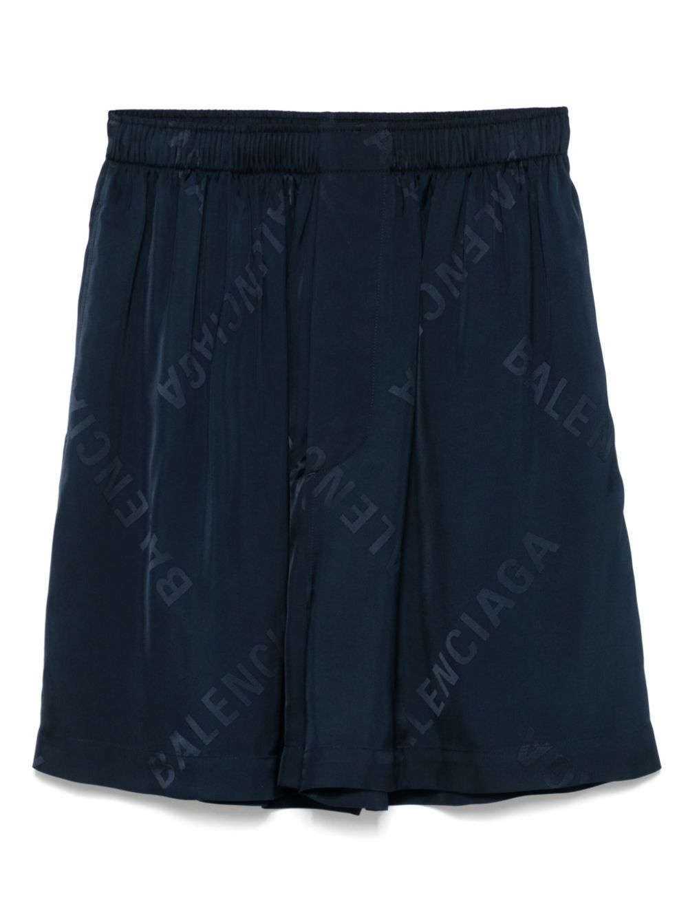 logo-jacquard shorts Highlights - Navy blue - Button fly fastening - Elasticated waistband with internal drawstring - Two side inset pockets - Rear patch pocket Imported Composition Viscose 100% SIZE & FIT Model measurements Height 6 ft 0 in(1.84 m) Bust/Chest 37.79 in(96 cm) Hips 37 in(94 cm) Waist 31.49 in(80 cm) FittingInformation Designed for a straight-leg fit, offering an unrestricted and comfortable fit over the leg Adjust this piece’s waistband to your preference using the drawstring Made from a lightweight non-stretch fabric