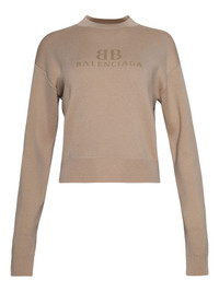 logo-jacquard top Highlights - Beige - Crew neck - Long sleeves - Ribbed cuffs - Logo jacquard - Straight hem Imported Composition Wool 54%, Cotton 42%, Polyamide 3%, Elastane 1% Washing instructions Read Manufacturer Guidelines