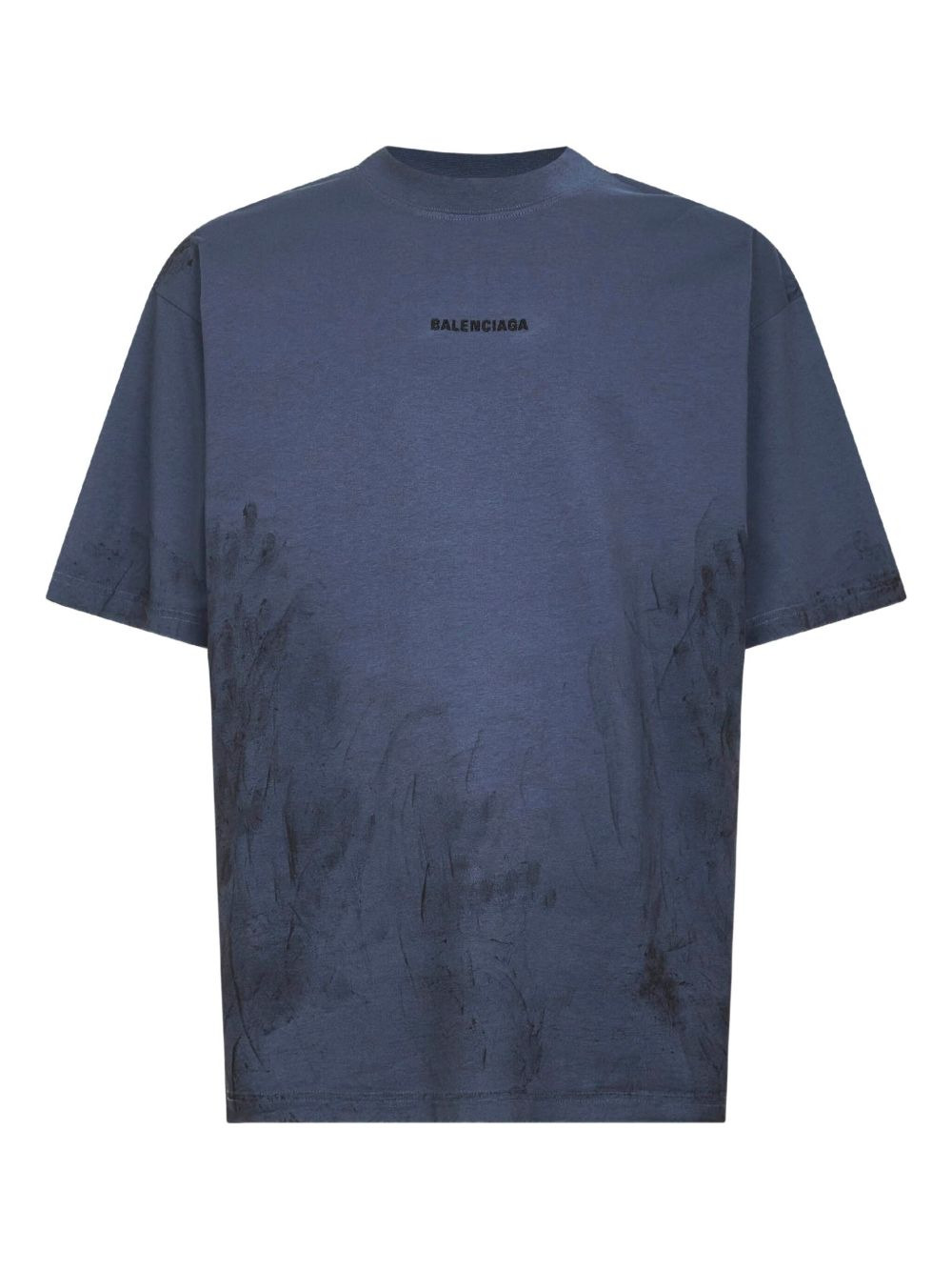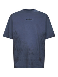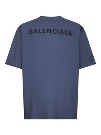 logo-print cotton T-shirt Highlights - Balenciaga back medium fit t-shirt in dark blue washed cotton with black details, featuring a casual and contemporary design. the model has a regular fit with a ribbed crew neck and balenciaga logo print on the back for a distinctive touch. an essential and versatile garment, ideal for urban and everyday looks. - material: 100% cotton - colour: blue - balenciaga back embroidery on the front and back - crew neck - short sleeves - article number: 764235ttvf93364- Imported Composition Cotton 100% Washing instructions Read Manufacturer Guidelines