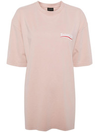 Logo-print oversized t-shirt Bold graphics and oversized silhouettes are integral to Balenciaga’s directional aesthetic, and this light-pink T-shirt is proof. It’s cut from cotton and stamped with the iconic Political Campaign logo print at the chest and back. Highlights - Pink - Cotton - Logo print at the chest - Oversize frame - Logo print to the rear - Crew neck - Short sleeves - Straight hem Imported Composition Cotton 100% SIZE & FIT Measurement SLEEVE LENGTH 6.29 in(16 cm) LENGTH 29.92 in(76 cm) WAIST 44.88 in(114 cm) BUST 44.88 in(114 cm) Washing instructions Machine Wash
