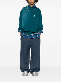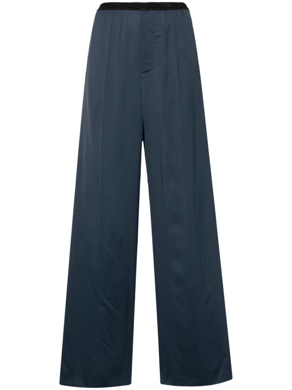 logo-waistband straight-leg pants Highlights - Cerulean blue - Satin finish - Elasticated logo waistband - Pressed crease - Concealed front zip fastening - Two side inset pockets - Rear welt pocket - Straight leg - Unlined Made in Italy Composition Outer: Viscose 100%, Polyester 62%, Polyamide 28%, Elastodiene 10% Lining: Cotton 100% SIZE & FIT Model measurements Height 5 ft 10 in(1.77 m) Bust/Chest 33.85 in(86 cm) Hips 34.64 in(88 cm) Waist 24.01 in(61 cm) FittingInformation Designed with a wide-leg cut, these trousers allow for a close fit at the waist and offer a loose and roomy fit over the leg The elasticated waist allows for a comfortable fit Made from a midweight non-stretch fabric This piece fits true to size – take your usual size Washing instructions Dry Clean Only